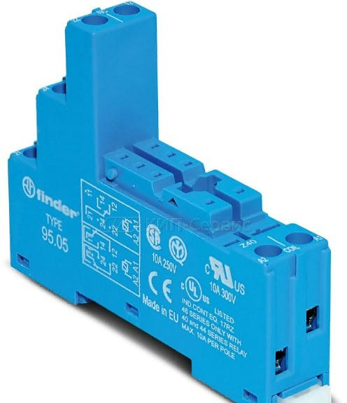 Дополнительные характеристики розетки Finder для реле 40.51, 40.52, 40.61 и модуля 99.02/86.30, с разд-ми конт., с метал, 9505SMA: