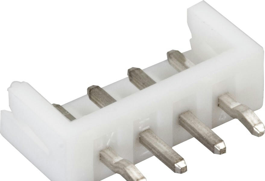 JST EH series 2.5mm pitch single-row shrouded top-entry (straight) PCB headers. They have integral keying which ensures correct polarisation when mated.