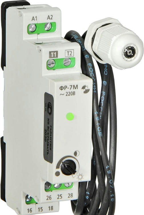 Фотореле Реле и Автоматика ФР-7М с датчиком, кабель 5м A8222-79682583 предназначено для управления уличным освещением. На лицевой панели реле расположен потенциометр. Он позволяет отрегулировать необходимую величину освещенности, при котором фотореле замыкает контакты.