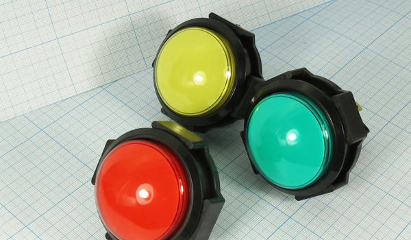 Кнопка с подсветкой красного цвета Большого размера on-(off)/off-(on), диаметр 52мм; №1851 R ПКн220 5,0(ON)-(ON)d24 ILкр12В5TDOME-B