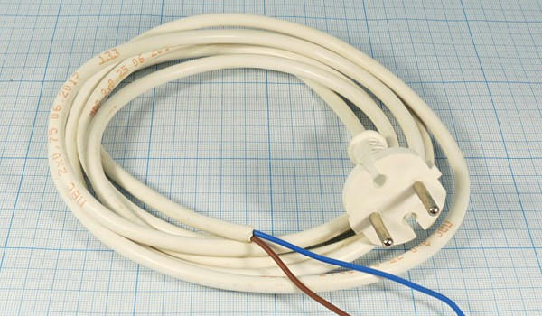 Шнур сетевой с круглой вилкой стандарта CEE7/16, ПВС, белый, длина 2.5м, сечение 0.75мм2,№ 13367Б шнур пит шт CEE7/16-каб 2L2,5м/2×0,756/