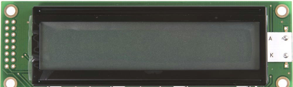 ЖКИ знакосинтезирующий 20 x 2, STN Серый Позитивный/прозрачно-отражающий светодиодная подсветка желто-зеленая размеры 116×37 мм, видимая область 85×18.6 мм, -20…70°C, контактные площадки 2 ряда слева 16 выводов